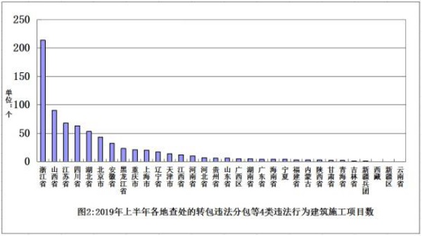 現將2019年上半年各地住房和城鄉建設主管部門上報的建筑工程施工轉包違法分包等違法行為查處情況通報如下: