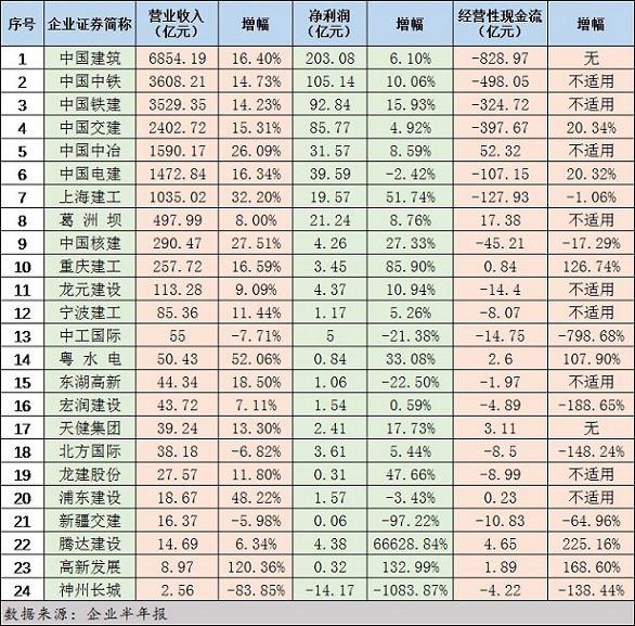 典型建筑業上市企業半年報透視:營收、凈利潤總體保持雙增長,“強者恒強”趨勢凸顯